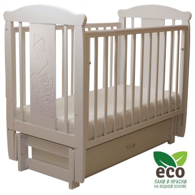 Кроватка "Соня 05" имеет механизм качания продольный маятник. Механизм качания фиксируется. Возможен вариант кровати с ящиком.